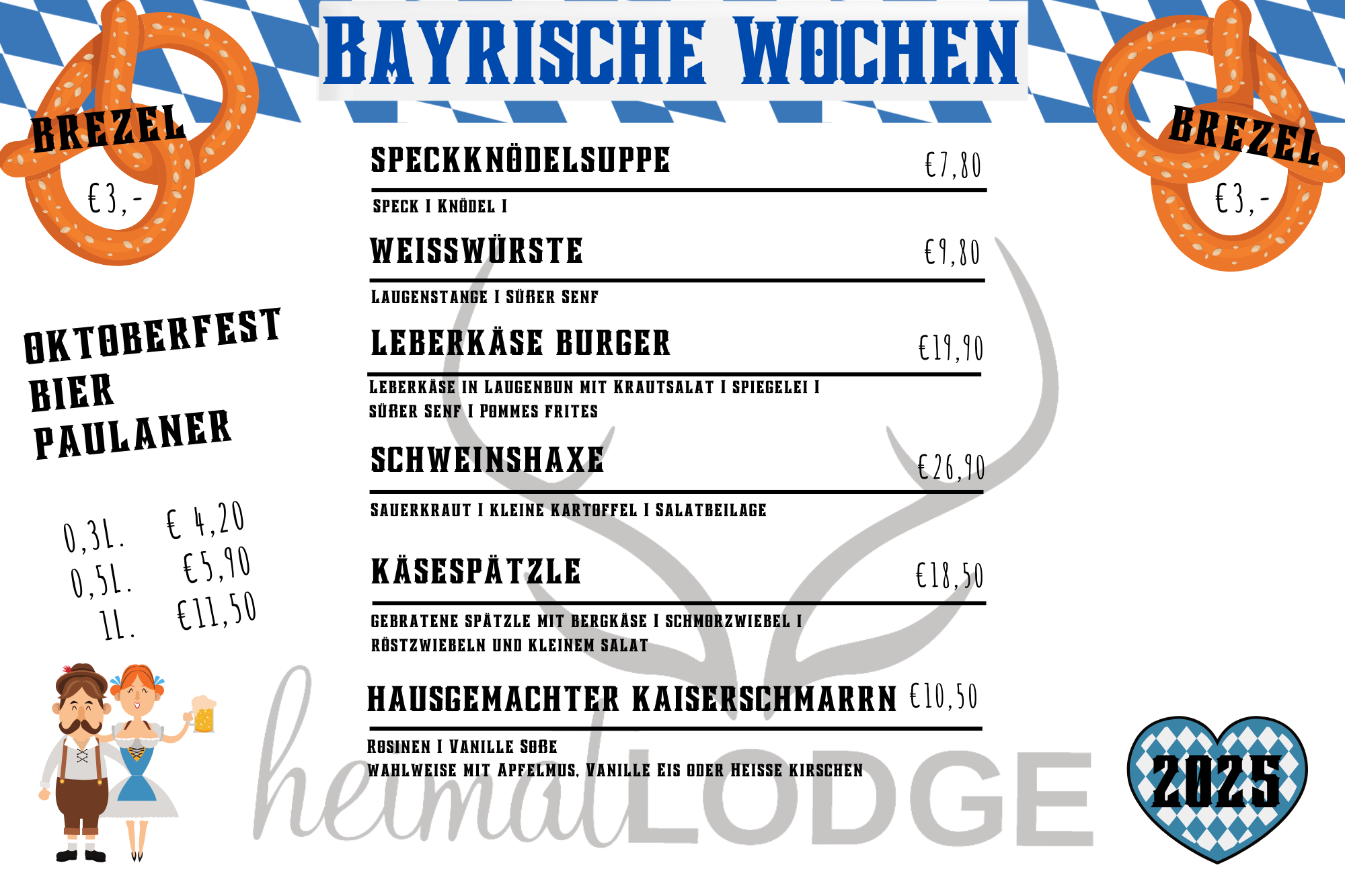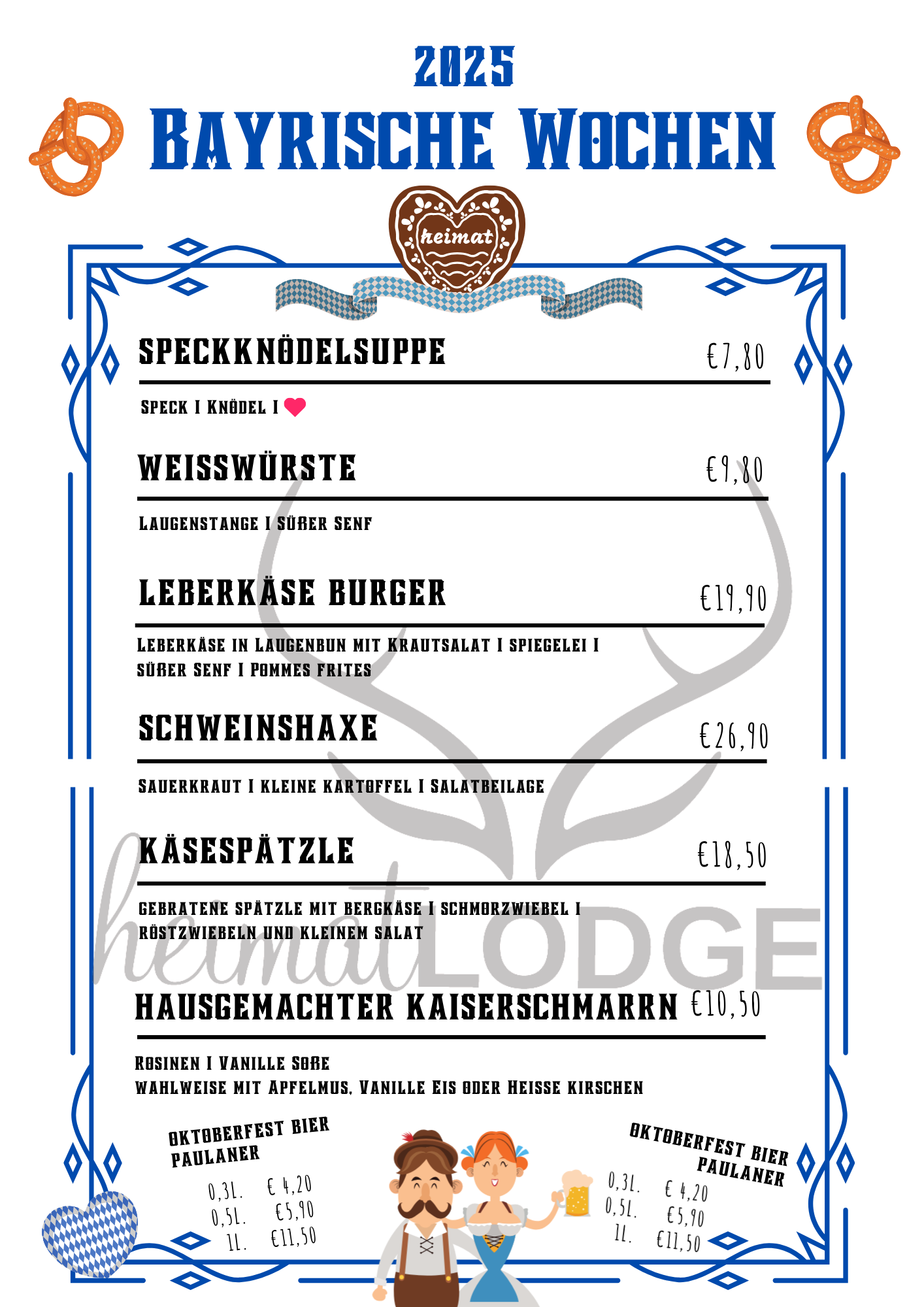 Unser Küchenchef hat eine feine Auswahl an bayrischen Spezialitäten für euch zusammengestellt – passend zum Oktoberfest, traditionell bayerisch und mit ganz viel Liebe zubereitet.